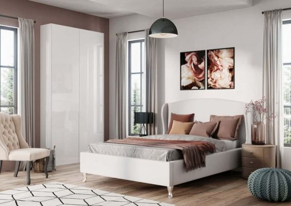 Miękkie obicie, bardzo zgrabne wezgłowie dodaje sypialni eleganckiej intymności.