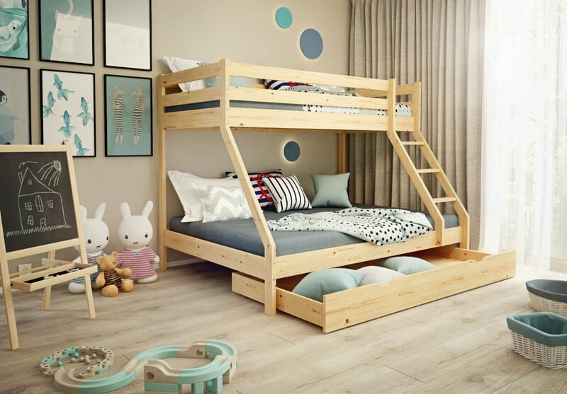 Łóżka piętrowe to doskonałe rozwiązanie w celu optymalizacji powierzchni w pokoju dziecięcym. Pokrywane wyłącznie ekologicznymi lakierami przez co są dobre dla alergików. W piętrowych łóżkach priorytetem jest bezpieczeństwo dzieci. Zbudowane z litej sosny łóżka gwarantują, że są stabilne, masywne i trwałe. W trakcie zabaw o bezpieczeństwo dzieci dbają wysokie barierki chroniące przed upadkiem.