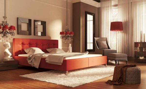 Guana, to dostojne łóżko tapicerowane z prostym wezgłowiem i zdobionym pikowaniem.